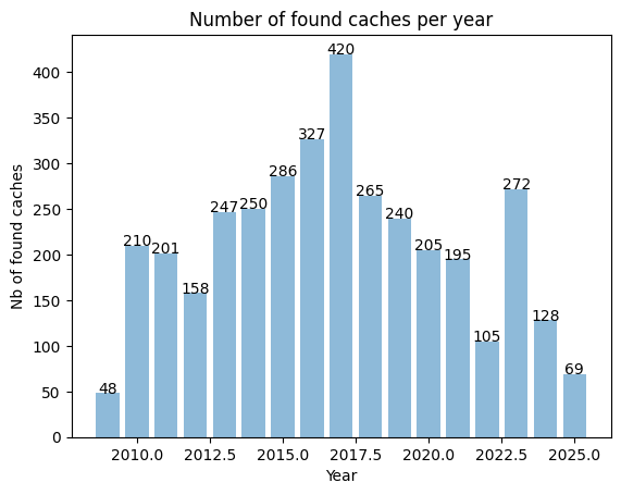 Number of found caches |